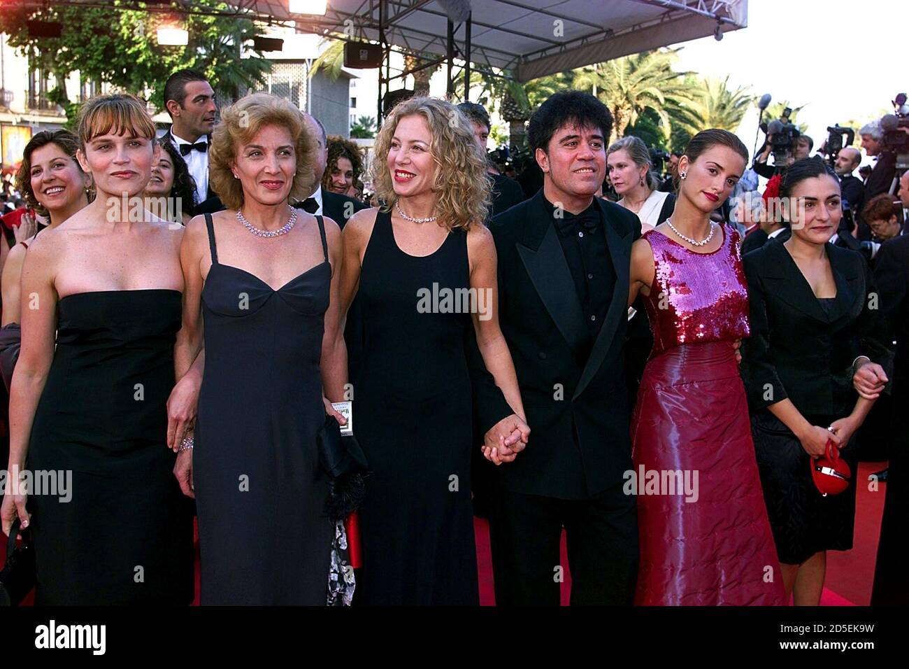 Spanische Regisseur Pedro Almodovar 2 R Kommt Mit Schauspielerinnen Aus Seinem Film Todo Sobre Mi Madre Fur Das Offizielle Screening Auf Dem 52 Cannes Film Festival 15 Mai Von L R Antonia San